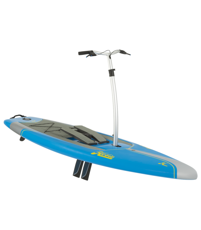 SUP à pédales pour avancer et guidon pour se guider. Offre une grande stabilité ainsi qu'une grande magnabilité grâce à sa largeur de planche équipée de son guidon. Cette planche peut également être utilisé comme un SUP classique, il suffit de retirer le guidon et les pédales. (démonstration dans le lien)